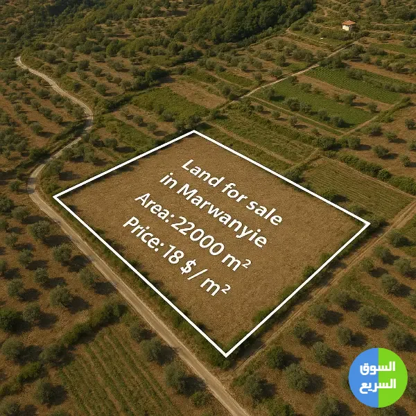 أرض في المروانية 22 ألف متر للبيع ب 400 الف $