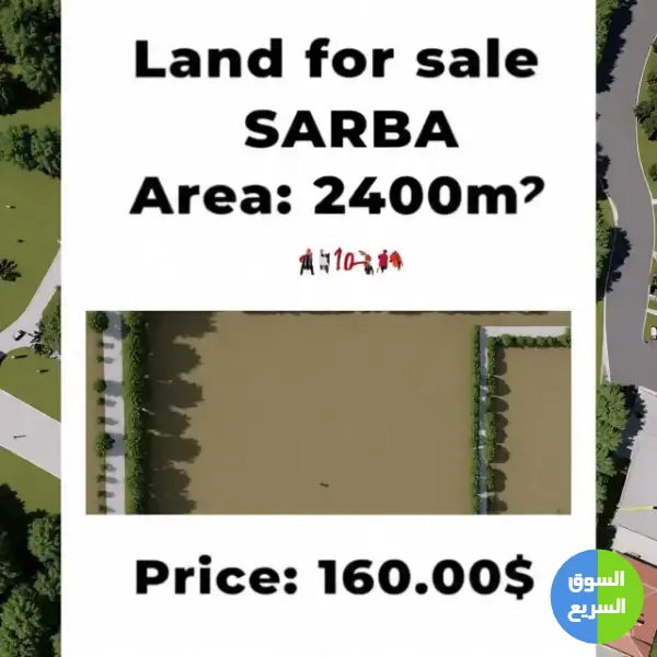 أرض 2400م² للبيع في صربا (الجنوب) ب 160 الف $