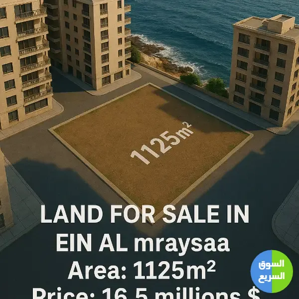 أرض على عين المريسة 1125م² منطقة خامسة مع مطل بحري للبيع