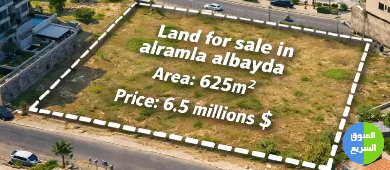 ارض زاوية 625م² في الرملة البيضا للبيع